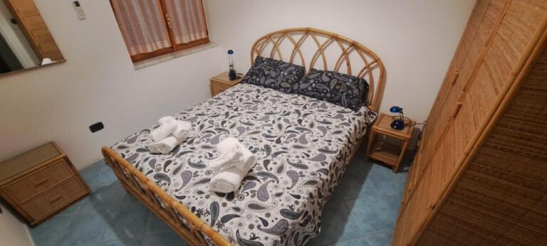 The sea view apartment is located on a hillside, close to the Palinuro nature park. It accommodates a maximum of 5 people and consists of two bedrooms, one double and the other with separable single beds and a small sofa bed, a fully equipped kitchen, a laundry corner with washing machine, two bathrooms.